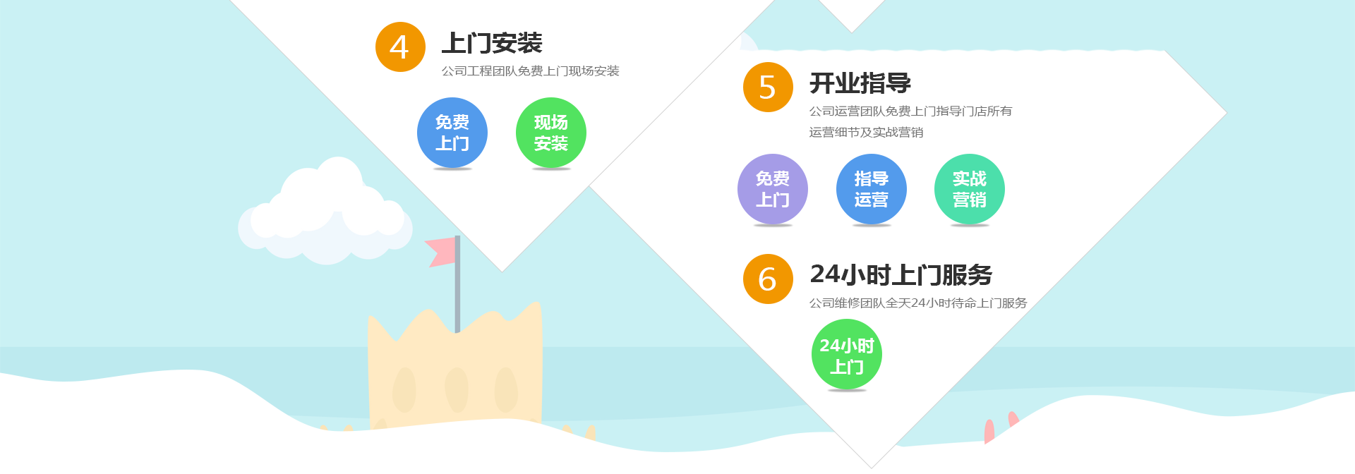 提供樂園整體的設計圖及效果圖、開業設備調試、開業指導及培訓。